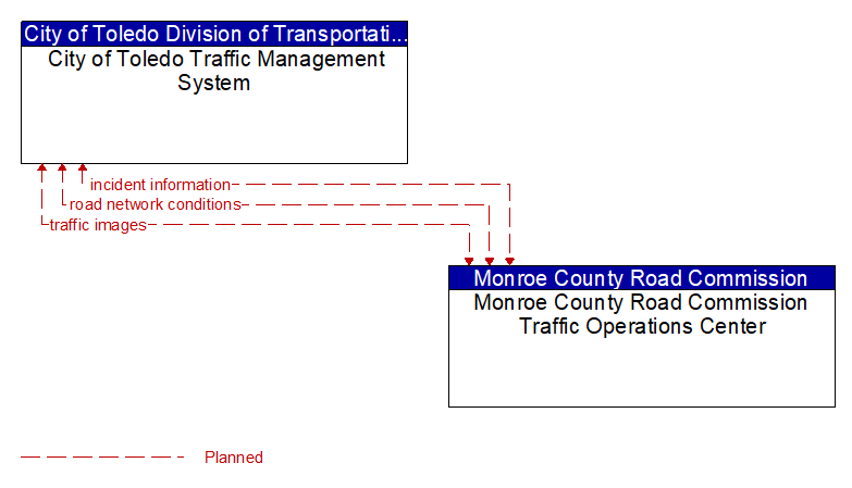 Interface: City of Toledo Traffic Management System - Monroe County Road Commission Traffic Operations Center